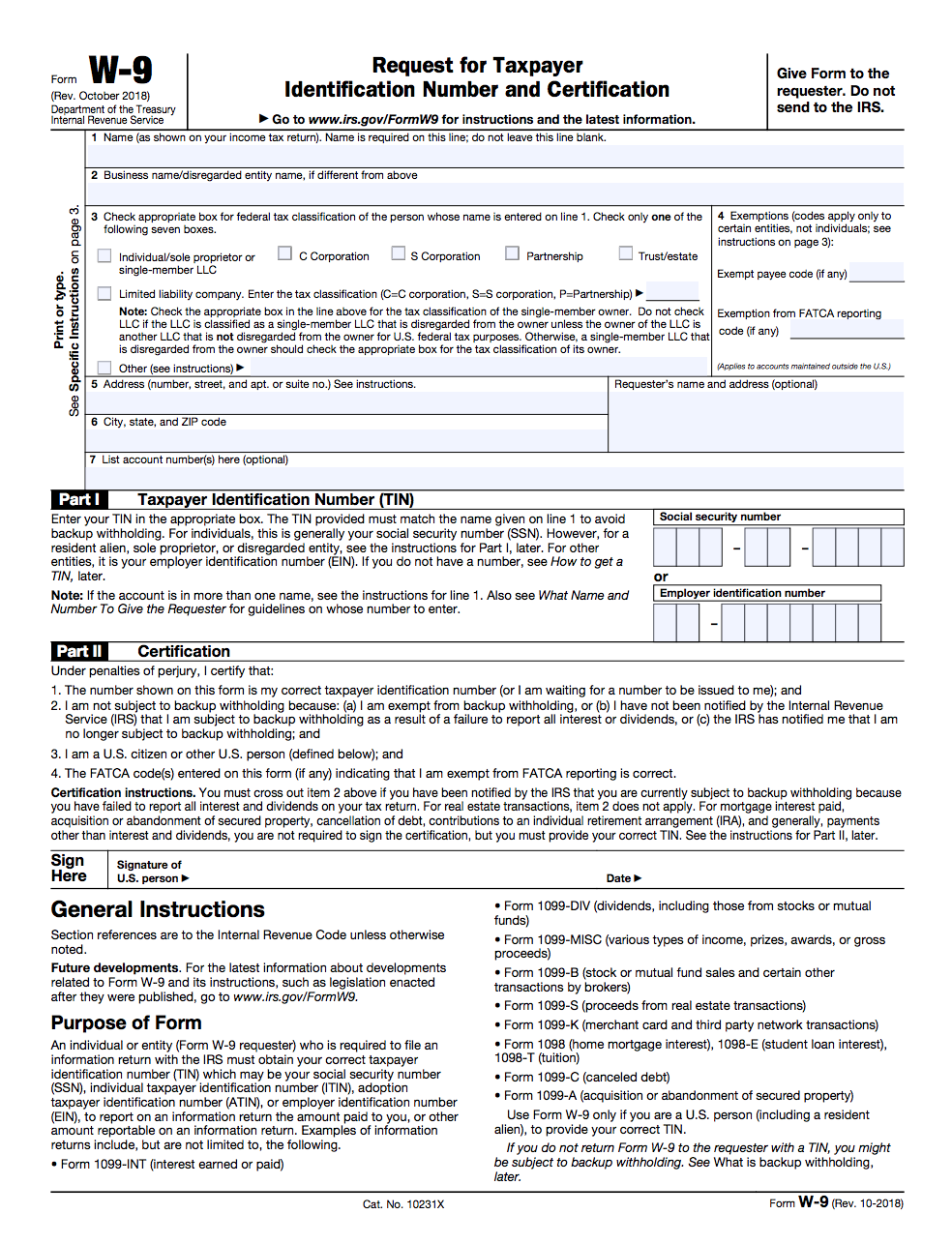 W-9 form is an Internal Revenue Service (IRS) tax form used to confirm a person's name, address, and taxpayer identification number (TIN) for employment or other income-generating purposes. The confirmation can be requested for either an individual defined as a U.S. citizen or a person defined as a resident alien.