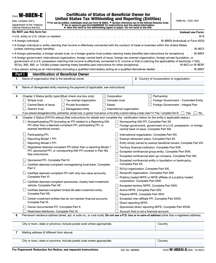 W-8BEN-E Form for Entities