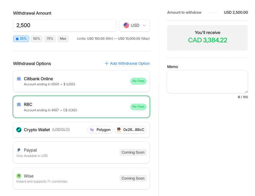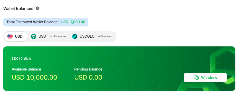 If you hold balances in multiple currencies, you can withdraw them by repeating the same steps.