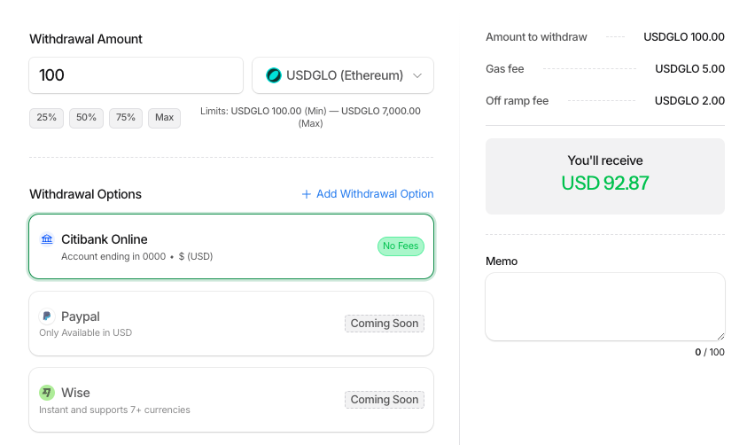 Keep in mind: When converting between currencies (e.g., digital currency → USD or vice versa), conversion fees apply.